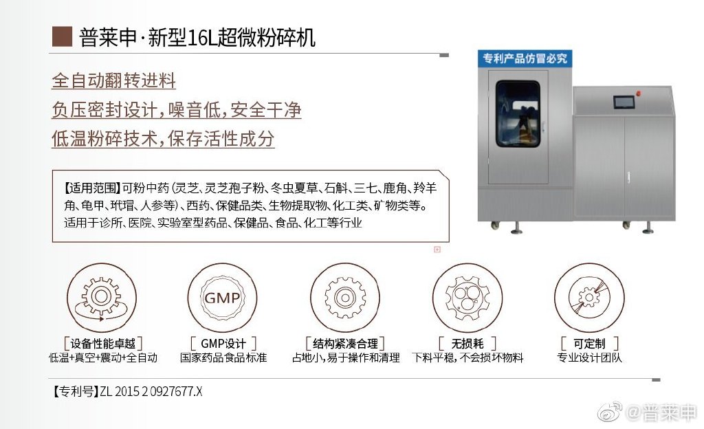 1、低溫 普萊申采用低溫冷凍的粉碎方式,使得中藥粉碎過成減少粉塵
